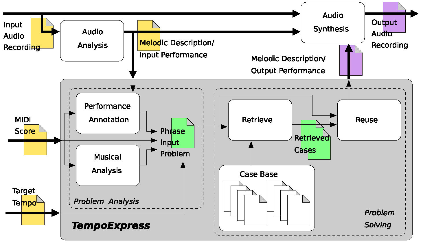 The research was focused on expressivity-aware tempo transformations of monophonic audio recordings of saxophone jazz performances. We investigated the problem of how a musical performance played at a particular tempo can be rendered automatically at another tempo, while preserving naturally sounding expressivity. This problem cannot be reduced to just applying a uniform transformation to all notes of the melody, since it often degrades the musical quality of the performance. We developed TempoExpress, a case-based reasoning system for expressivity aware tempo transformations. A validation of the system showed superior results compared to uniform transformation.
